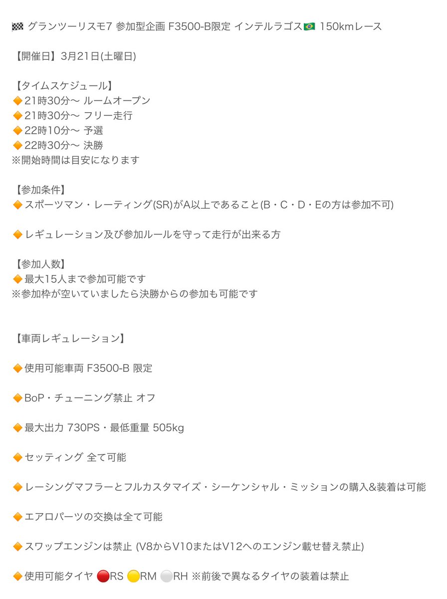【GT7】【募集開始】F3500-B限定 インテルラゴス 150kmレース(3月21日)