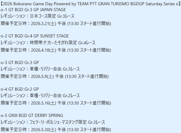 【GT7】【募集開始】BGDGP Gr.4 & FR Gr.4レース(2026年4月18日-19日)